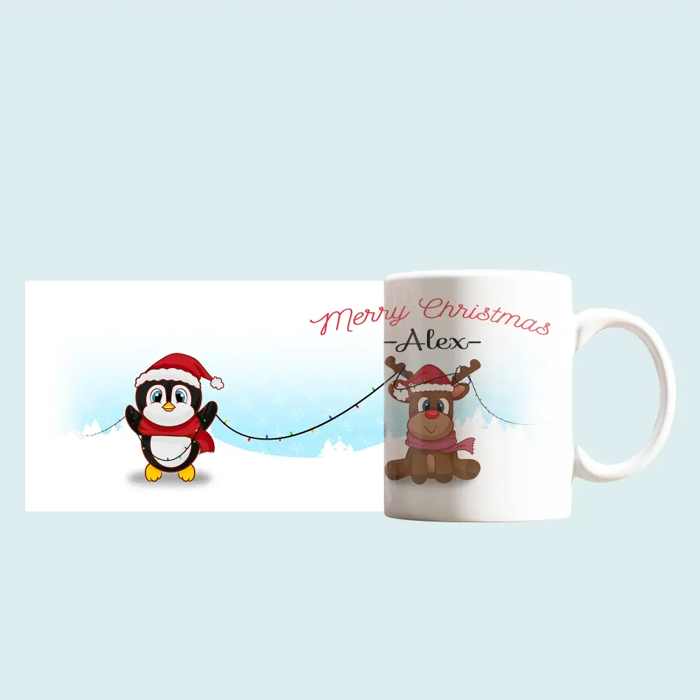 Cana personalizata - Ren si Pinguin